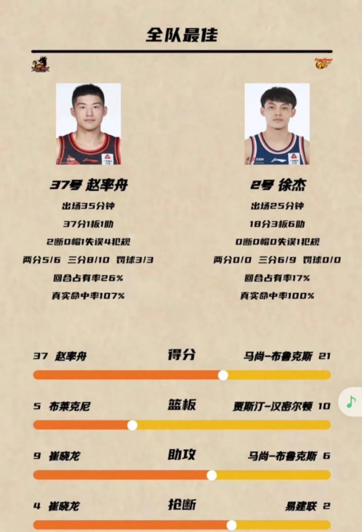 不过根据辽宁媒体人“导演我躺那”提供的信息,表示前辽宁男篮球员赵率舟并没有参与其中,因为那场比赛赵率舟三分球10投8中,砍下了37分。